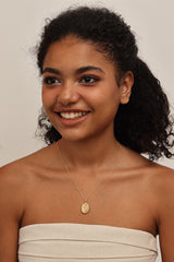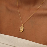 This asymmetrical oval fingerprint necklace can be customized with a fingerprint or handwriting.