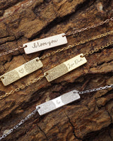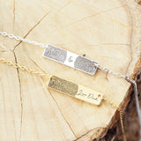 This bar fingerprint necklace can be personalized with fingerprint or handwriting. It's a meaningful gift for your loved one.