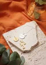 The tiny heart/circle will be represented for children or little sisters initial name. It's even more special to come with birthstone (add-on option).